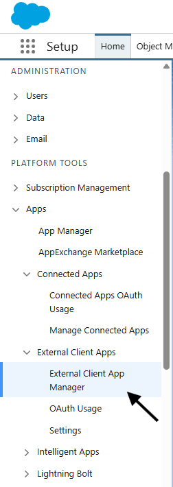 7. Navigate back to the Manage Connected Apps page using the menu on the left side of the screen as shown.