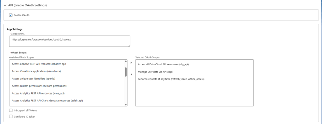(We previously recommended the Full access (full) scope, but this scope is no longer supported as of the October 2025 Salesforce Winter ’26 update. Integrations configured before this date will need their scopes amended.)