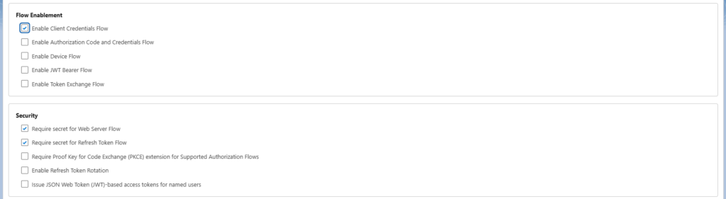 - Ensure Require Secret for Web Server Flow is checked, and Require Secret for Refresh Token Flow is also checked.