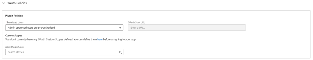 9. In the OAuth Polices section under Permitted Users, set the dropdown to Admin Approved Users are Pre-Authorized, and select OK in the dialogue box.