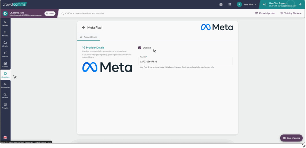 You can update your Meta Pixel setup at any time via the integration tile, simply change your ID and save changes or unselect the enabled box to disable tracking.