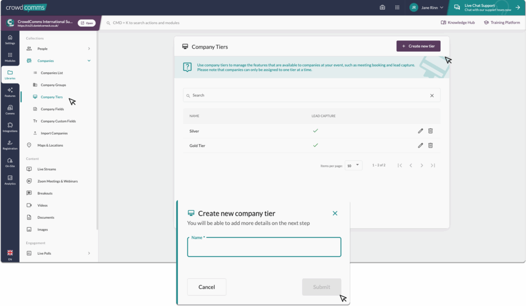 Now you have set up your companies and tiers you are ready to begin configuring the lead capture app for your event. To begin navigate to the On Site tab in the CMS and select Lead Capture from the secondary menu.